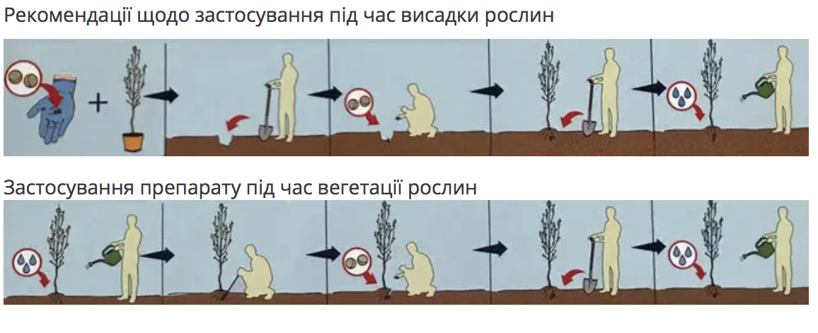 При посадці саджанців вносять у посадкову яму 1-2 таблетки препарату.