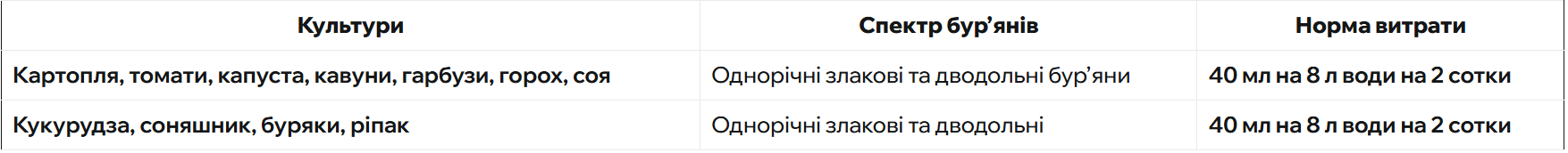 Опрыскивание почвы после посадки до появления всходов или до высадки рассады. Рекомендуется неглубокая заделка гербицида во влажный слой почвы. Максимальная кратность обработки – 1 раз. Период защитного действия – 40-60 дней.