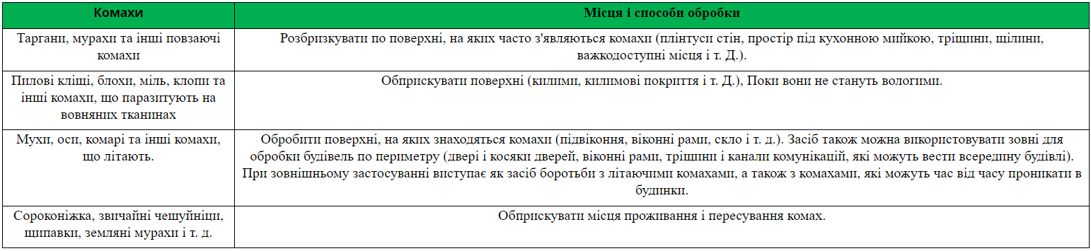 Эффективный инсектицидный препарат быстрого действия для уничтожения летающих и ползающих насекомых как внутри, так и снаружи помещений. Средство обладает длительным периодом действия, первые результаты заметны уже в течение первых суток после применения.
