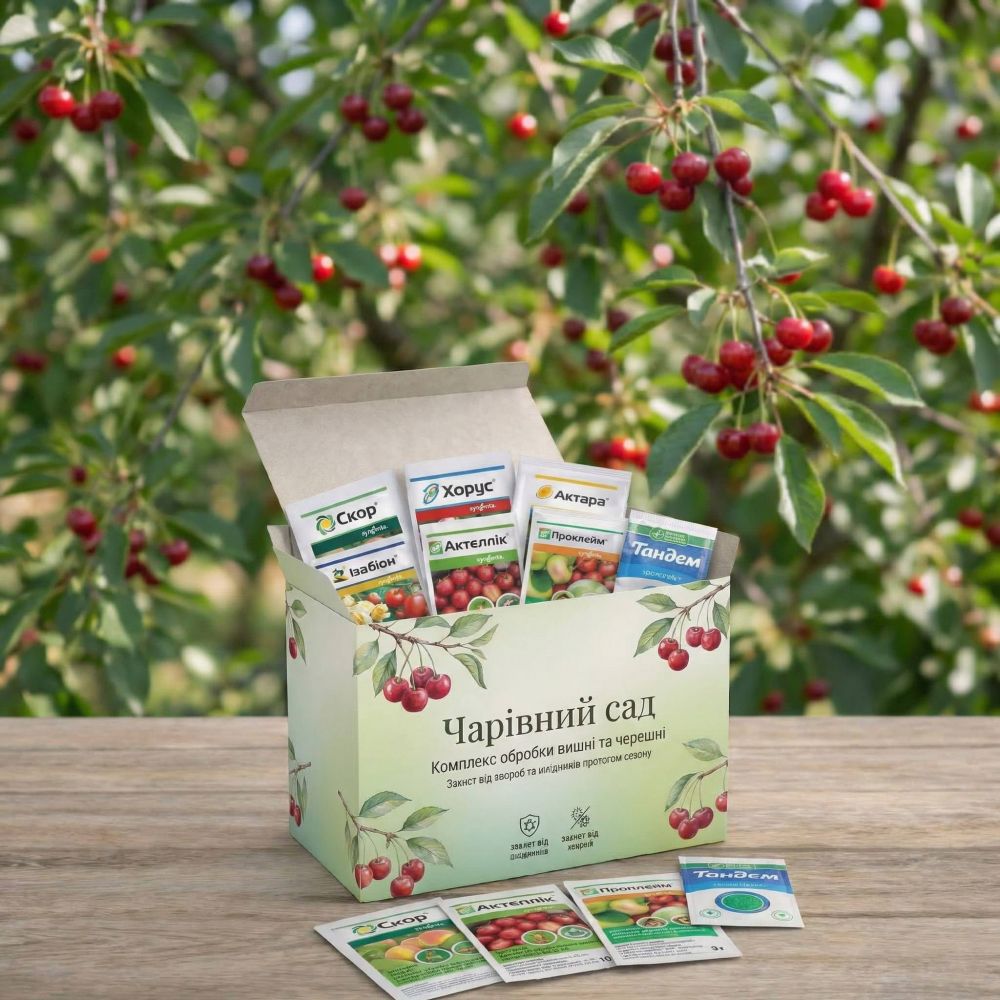 Защита плодов от болезней и вредителей, улучшение качества урожая. Используем Миравис 3 мл 2 уп + Проклейм 4 г 1 уп + Изабион 20 мл 1 уп + Тандем 10 мл. Рабочий раствор в 10 л воды.